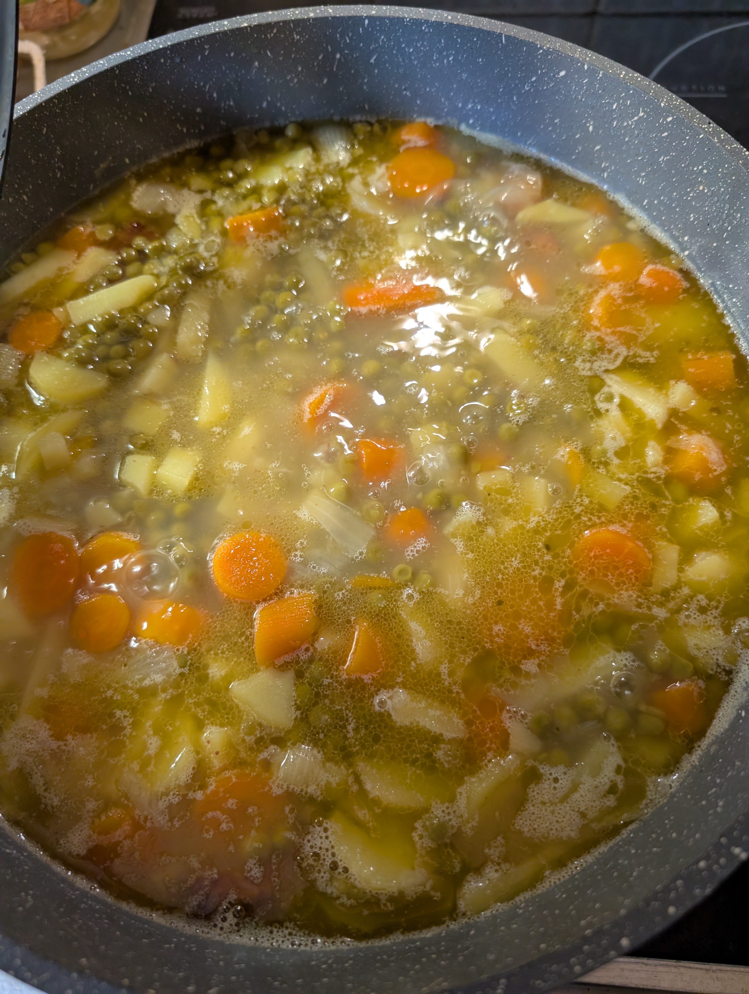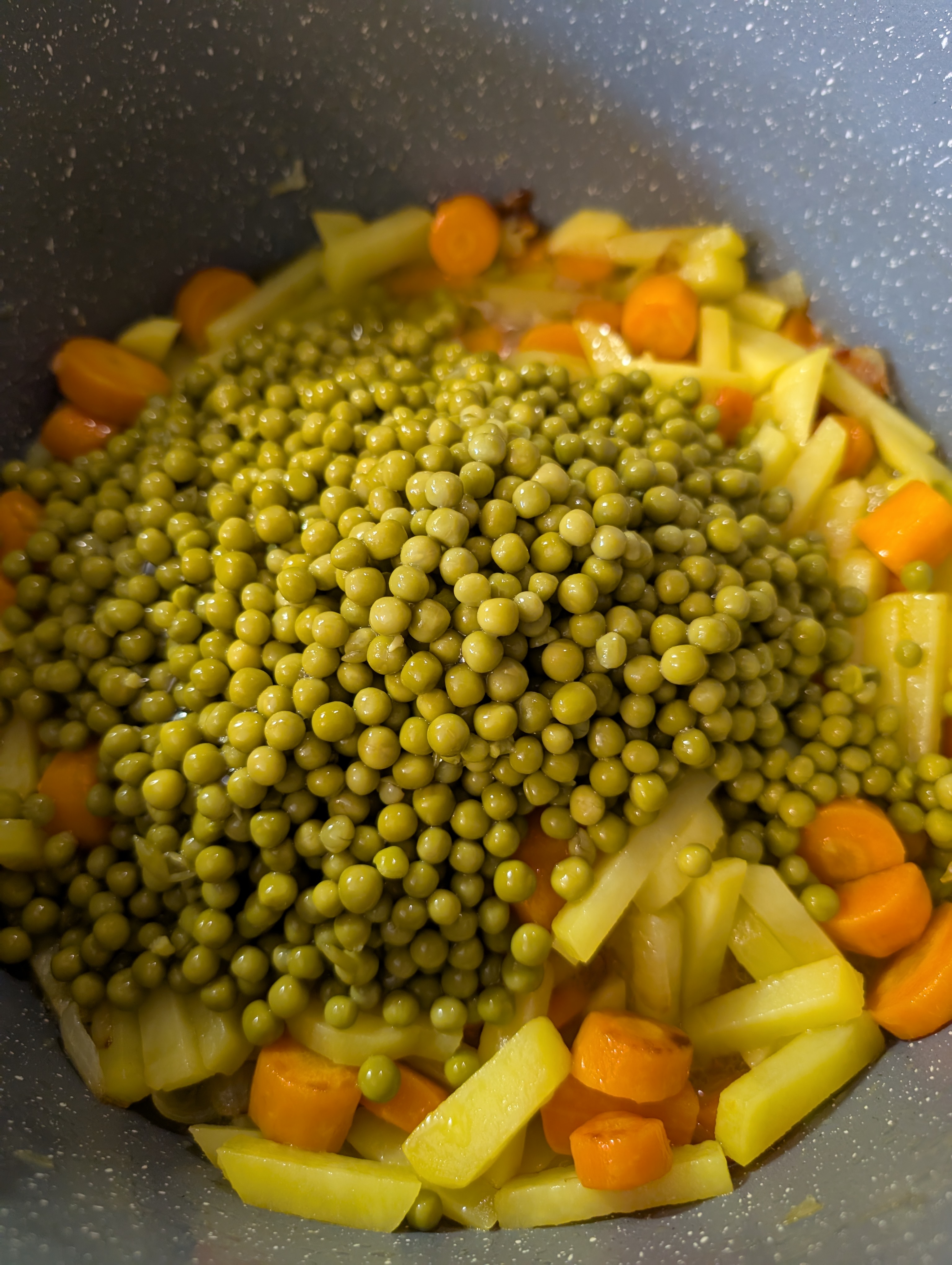 Dann die Erbsen dazugegeben: