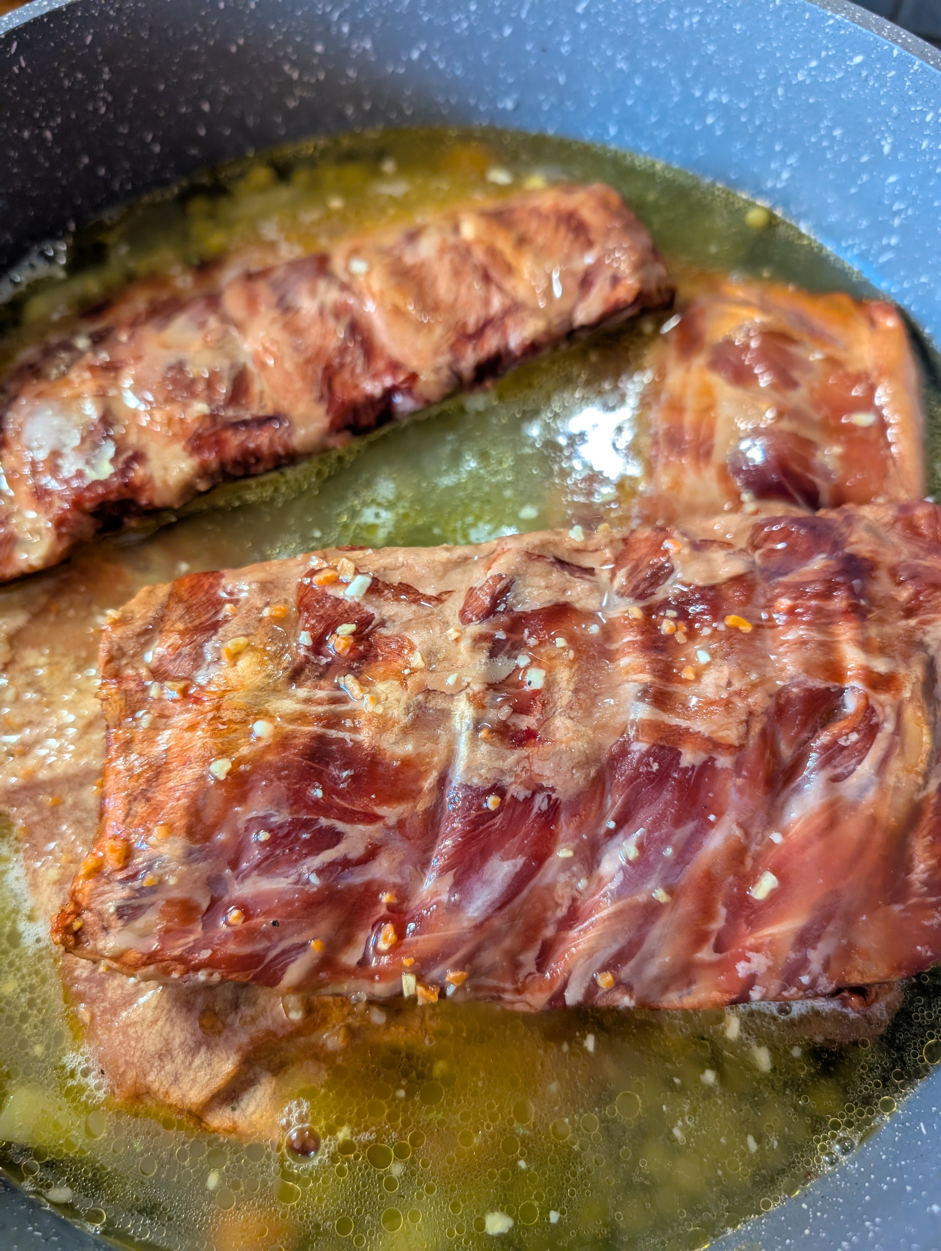Die gepoekelten und im Anschluss kaltgeraeucherten Rippchen dazu: